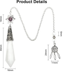 Pendule de Cristal de Guérison : Le pendule est un outil utilisé pour communiquer avec les esprits par le biais de votre moi supérieur ou de vos guides. Une utilisation intéressante de votre pendule est qu'il peut être employé pour des sélections de type "oui ou non" et des choix multidirectionnels lorsque vous êtes confus, il peut ainsi vous apporter une réponse. Par ailleurs, le pendule de cristal peut être utilisé pour le reiki, la guérison, la méditation, l'équilibrage des chakras, l'absorption d'énergie, la divination, la radiesthésie et les rituels de sorcellerie. Vous pouvez également utiliser le pendule pour purifier toute énergie négative dans une pièce.