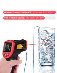 PLAGE DE TEMPÉRATURE PLUS LARGE : thermomètre infrarouge de -50 à 650℃(-58 à 1202℉), sonde de thermocouple de type K de -40 à 500℃( -40 à 932℉), émissivité réglable de 0,1 à 1,0.
